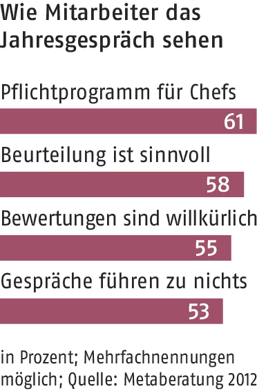Ein solcher „Rückblick mit Rücksicht“ helfe beiden Seiten: Chefs erhalten ein Feedback zu ihren Qualitäten als Führungskraft und Ideen für Verbesserungen im Betrieb, den Mitarbeitern hilft das Gespräch, ihre Rolle im Betrieb zu finden und das Selbstwertgefühl zu stärken. In ihrem Buch „Mitarbeitergespräche“ (Orell Füssli Verlag 2011, 200 Seiten, 19,95 Euro) raten Wilfried Braig und Personalentwickler Roland Wille den Unternehmern zu folgender Vorgehensweise: