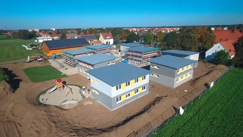 Vom Spatenstich bis zur schlüsselfertigen Übergabe brauchen wir für ein Haus mit vier Wohnungen nur drei Monate“, rechnet Alexander Gumpp vor. Der Holzbauunternehmer und Vizepräsident des bayerischen Zimmererhandwerks hat das mit seinem Unternehmen Gumpp und Maier aus Binswagen selbst vorgemacht: In Königsbrunn bei Augsburg entstand in dieser Zeit ein Asylbewerberheim mit zehn Häusern für 120 Flüchtlinge.