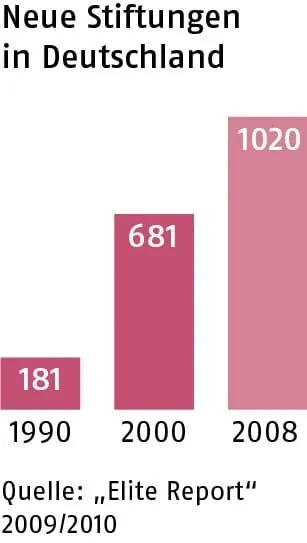 Das Thema Stiftungen boomt. Ende 2008 gab es in Deutschland bereits 16406 Stiftungen bürgerlichen Rechts mit einem geschätzten Gesamtvermögen von 100 Milliarden Euro. „In den vergangenen zehn Jahren wurden in Deutschland mehr Stiftungen errichtet als zuvor in der deutschen Nachkriegsgeschichte“, weiß Christoph Mecking, Rechtsanwalt in Berlin und Geschäftsführer des Instituts für Stiftungsberatung. Die größte ist die Robert Bosch Stiftung in Stuttgart mit über fünf Milliarden Euro Vermögen und zuletzt 60 Millionen Euro Fördermitteln im Jahr. Sie hält 92 Prozent des Stammkapitals der Robert Bosch GmbH und unterstützt vor allem in den Bereichen Bildung und Information.
